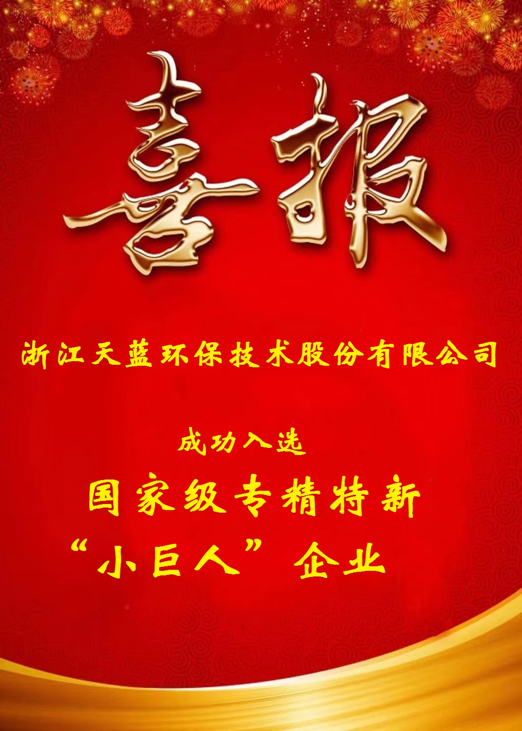 近日,浙江省經(jīng)濟和信息化廳發(fā)布了《關(guān)于浙江省第四批專精特新“小巨人”企業(yè)和第一批專精特新“小巨人”復核通過企業(yè)名單的公示》,天藍環(huán)保憑借在大氣污染治理領(lǐng)域的技術(shù)創(chuàng)新綜合實力和市場占有率,成功入選國家級專精特新“小巨人”企業(yè)名單。